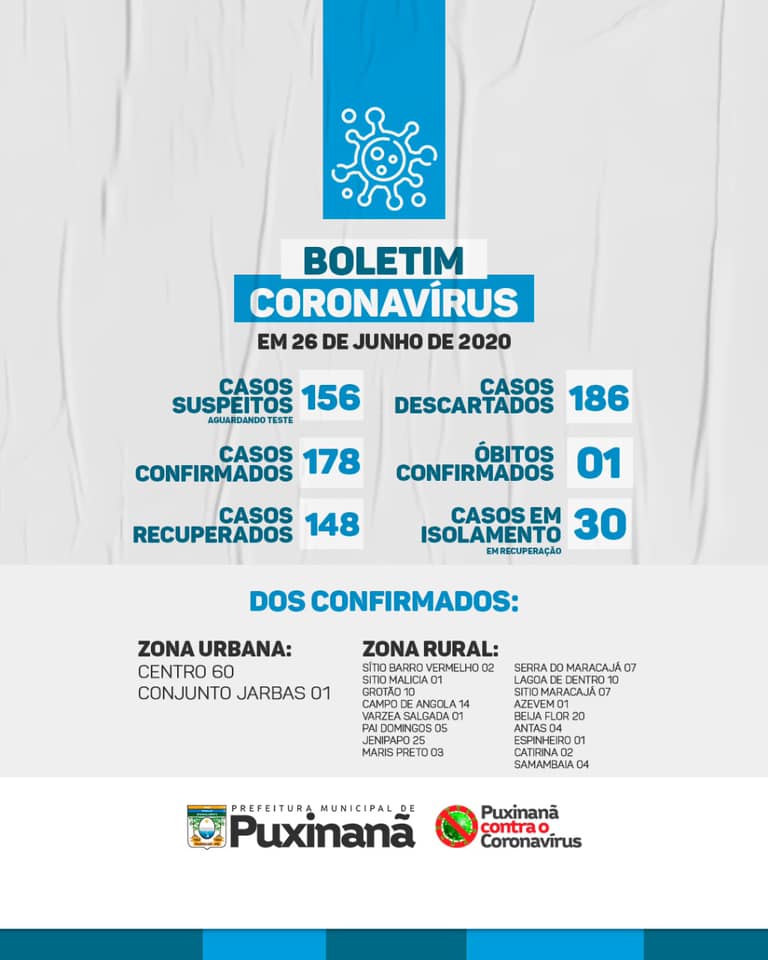 Boletim epidemiológico atualizado, em: 26/06/2020.
