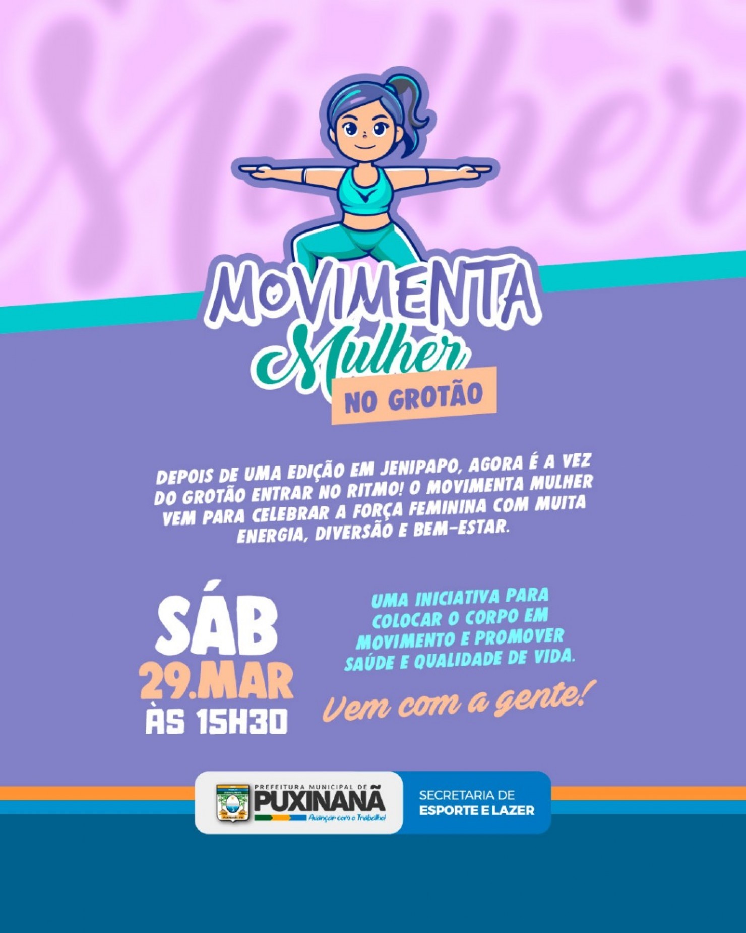 Depois de uma edição de sucesso em Jenipapo, agora é a vez do Grotão receber o Movimenta Mulher, um evento dedicado à saúde, ao bem-estar e à celebração da força feminina. A ação acontece neste sábado (29), às 15h30, na Praça do Grosso, reunindo a comunidade para uma tarde de muita animação e atividade física.