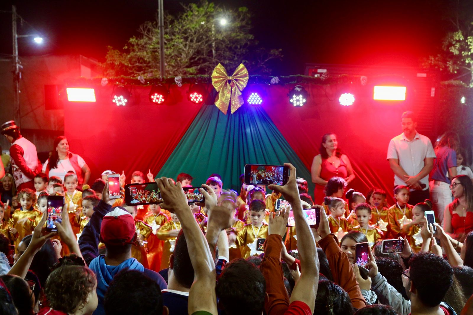 A abertura contou com o acendimento das luzes, deixando o espaço ainda mais iluminado e acolhedor para receber as famílias puxinanaenses. A chegada do Papai Noel também foi um dos momentos mais aguardados, especialmente pelas crianças, que lotaram o local para dar as boas-vindas ao bom velhinho. A programação da noite também trouxe a participação especial da Creche Filismina Gonçalves de Queiroz, que realizou uma bela apresentação.