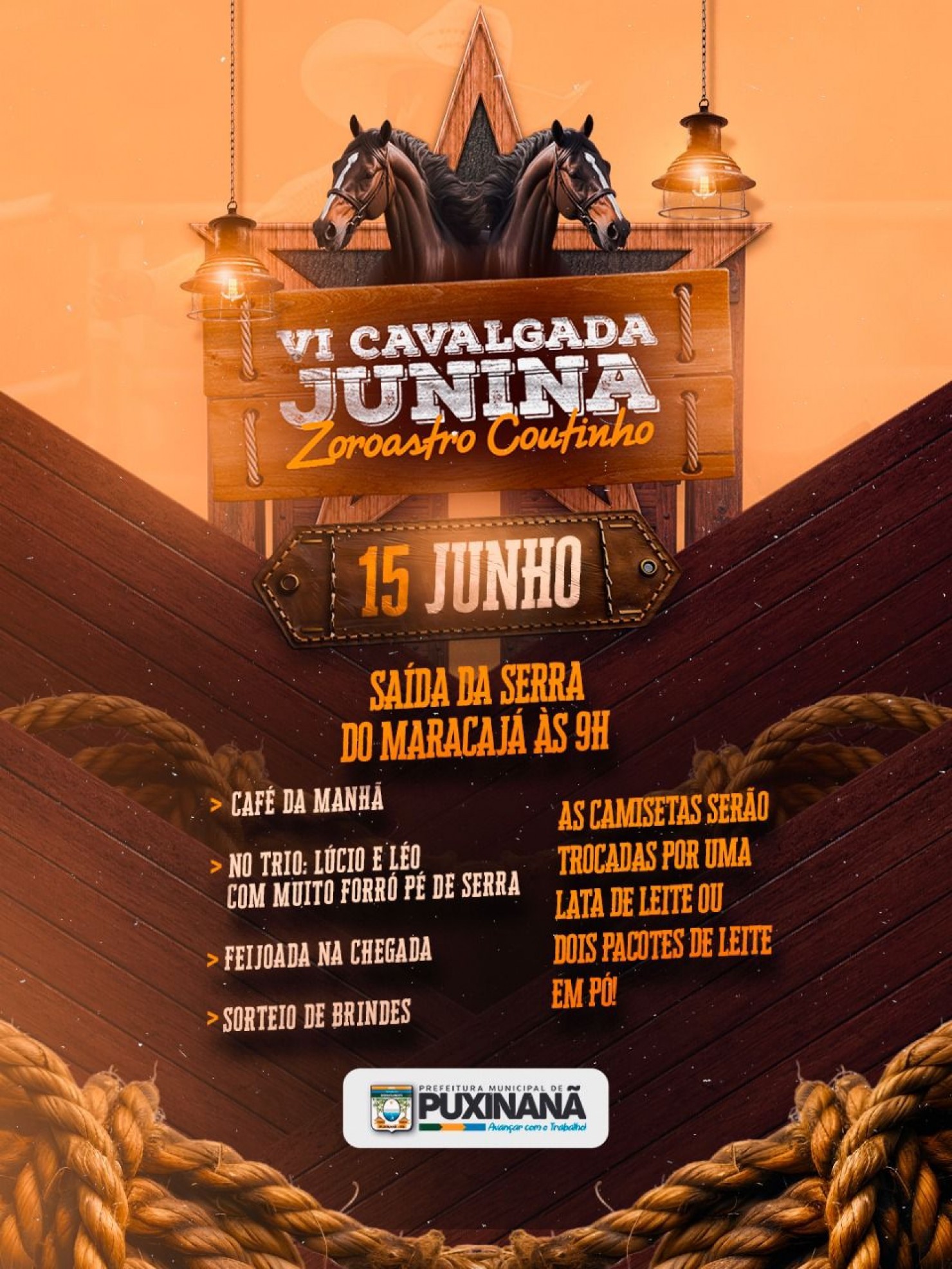 A VI Cavalgada Junina Zoroastro Coutinho é uma realização da Prefeitura Municipal de Puxinanã e convidamos todos a vivenciarem este domingo especial conosco!