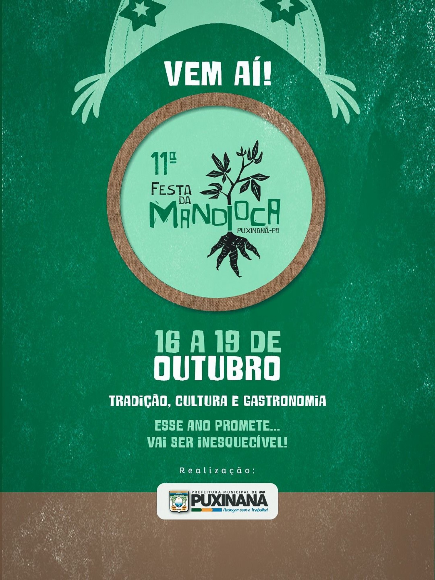 A Prefeitura Municipal de Puxinanã informa que a 11ª edição da Festa da Mandioca será realizada entre os dias 16 e 19 de outubro de 2025. O anúncio reforça o compromisso da gestão com a valorização da cultura, da gastronomia e da agricultura local.