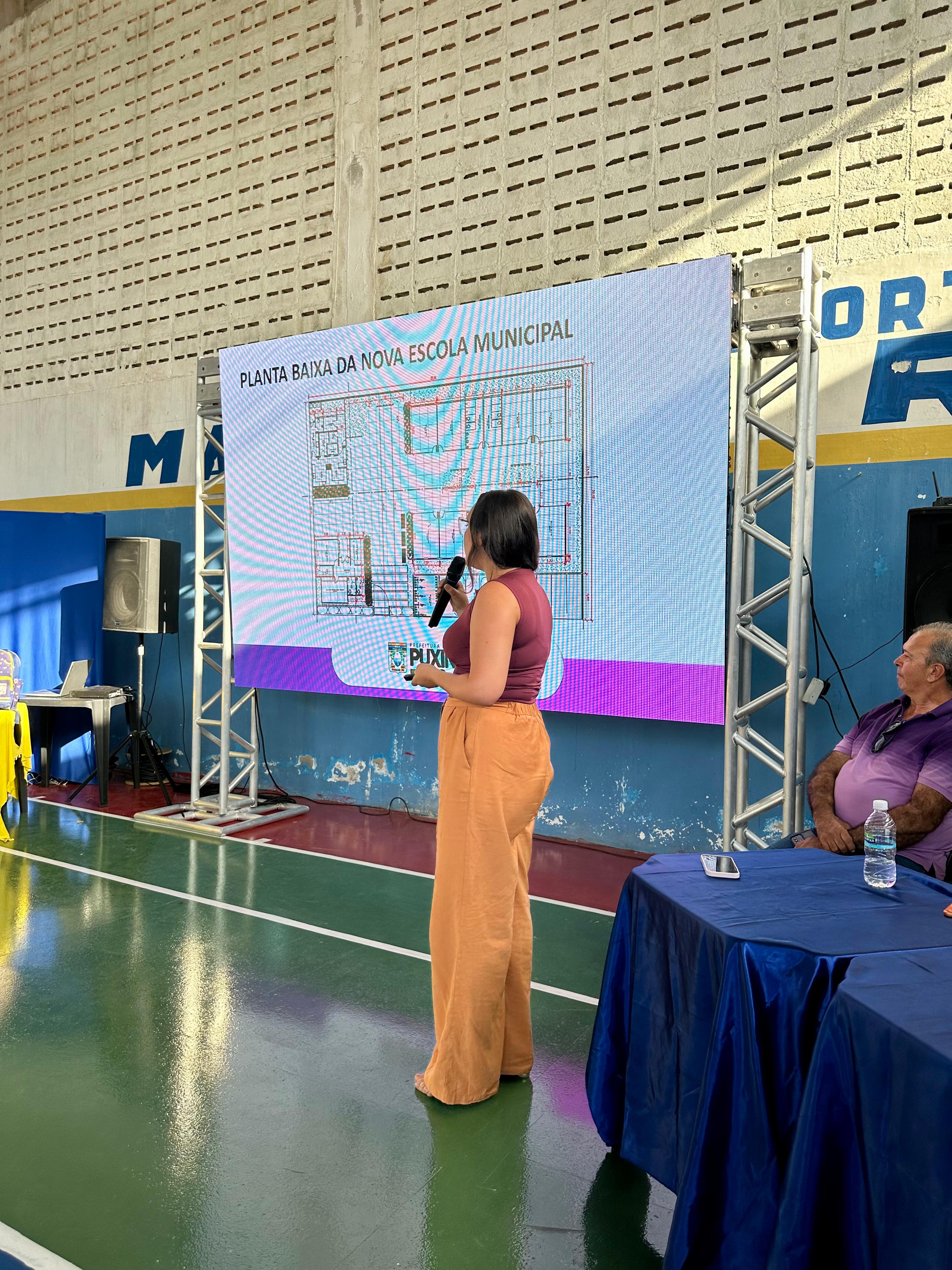 Durante o evento, a administração municipal apresentou o projeto arquitetônico da Nova Escola Municipal do Jenipapo. A unidade de ensino receberá um aporte financeiro de R$ 1.915.182,76, visando modernizar a estrutura educacional da localidade e atender a uma demanda da região.
