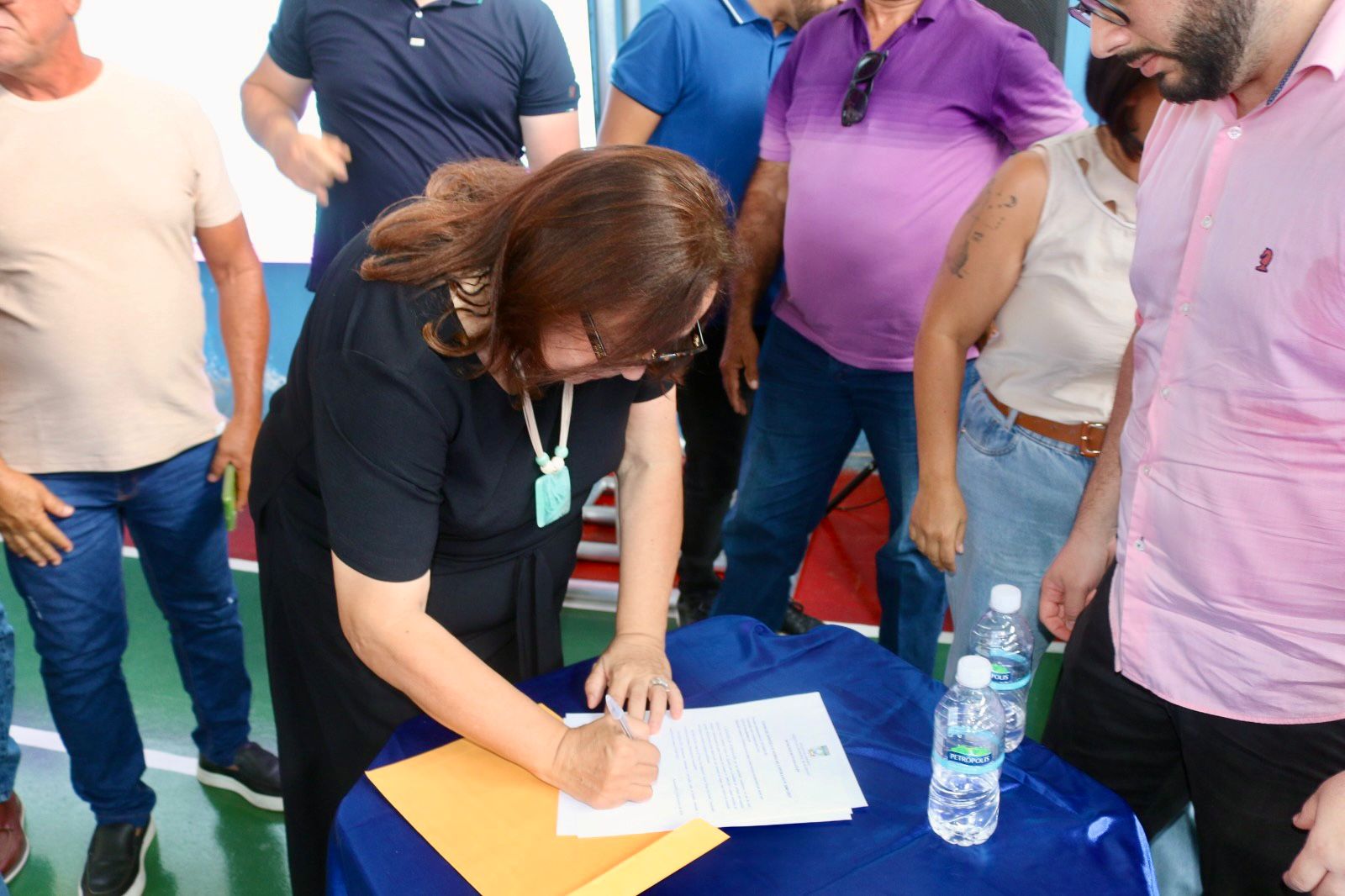 O ato solene aconteceu na Quadra da Escola Municipal Marizete Raposo e consolidou o cronograma de entregas durante a semana festiva. Estiveram presentes na solenidade a Prefeita Eleuza de Oliveira, a Vice-prefeita Gisele Agripino, além de secretários municipais e vereadores da base aliada.